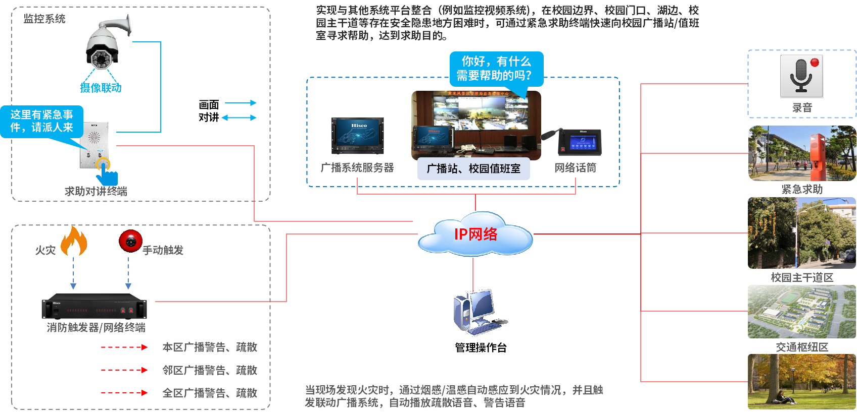 紧急求助、应急消防广播联动: