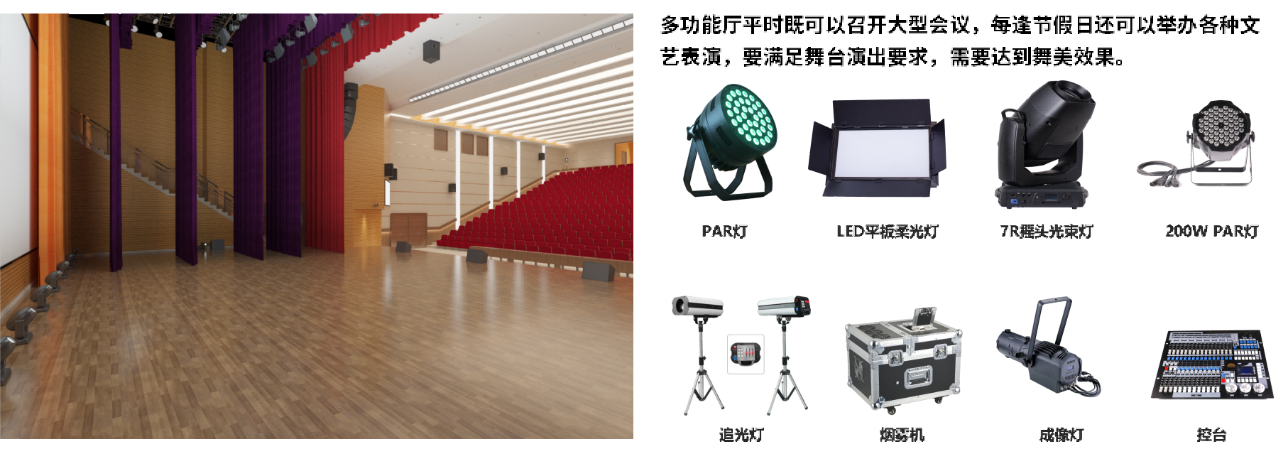 多功能报告厅-舞台灯光系统: