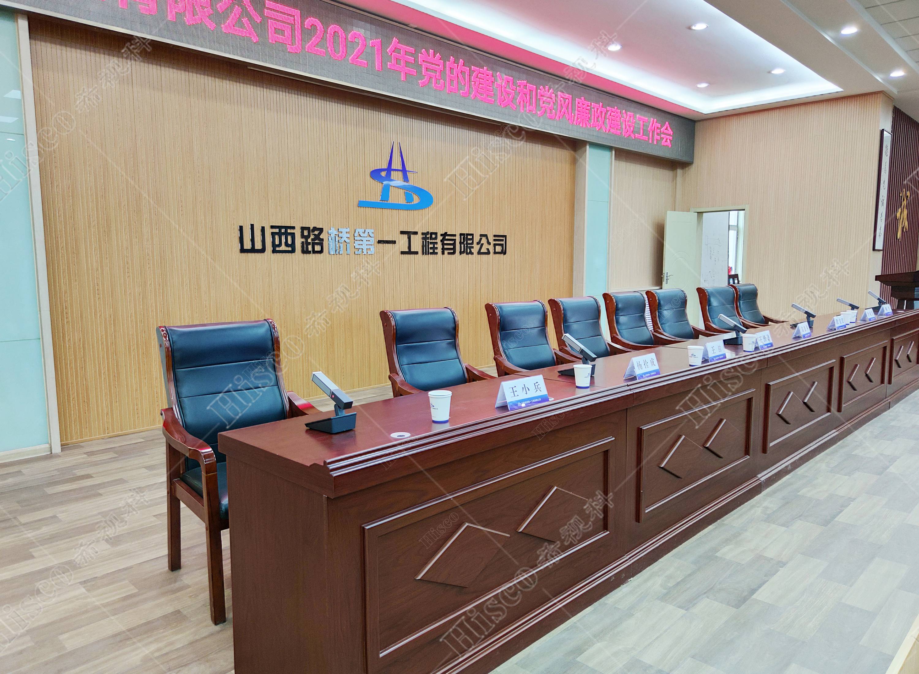山西路桥第一工程有限公司成立于1955年,本次项目为企业集团会议室会议系统建设,主要设计了数字会议系统、扩声系统、显示系统、集中控制系统、矩阵系统、无纸化升降等。