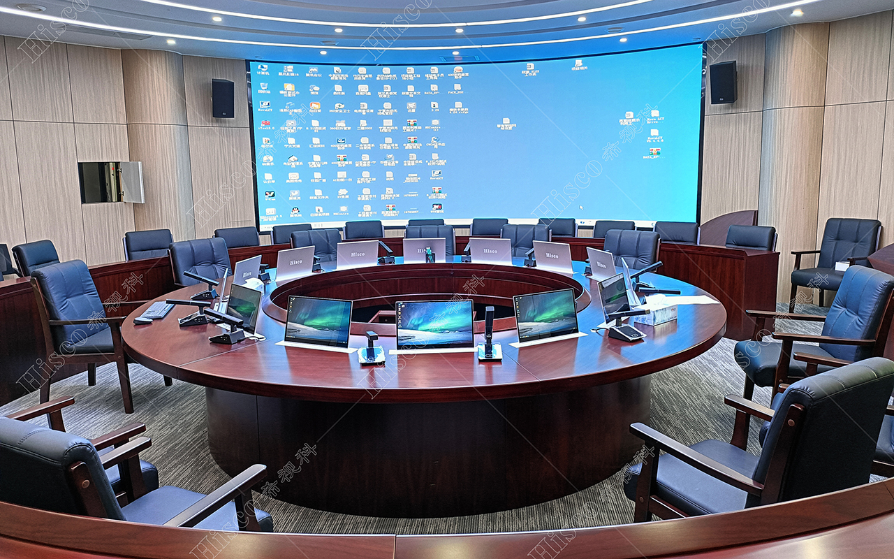 某警官学院Hisco/希视科品牌麒麟系统无纸化、短咪杆数字会议、扩声系统、中控矩阵系统调试完成,效果用户满意