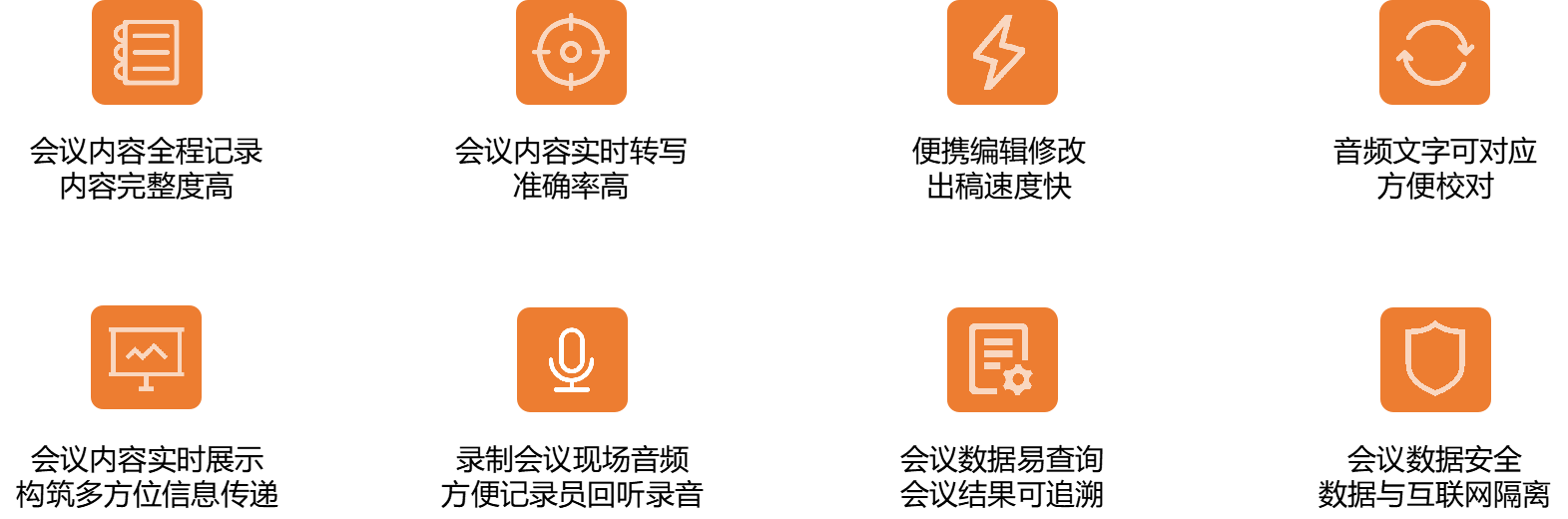 • 适用场景:办公会议、政府报告、新闻发布、学术讲座等各行业领域会议场景。